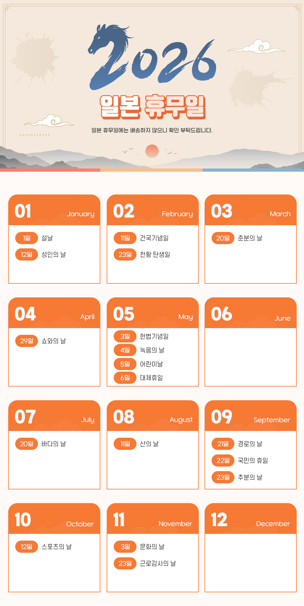 2026년 일본 휴무일 안내
