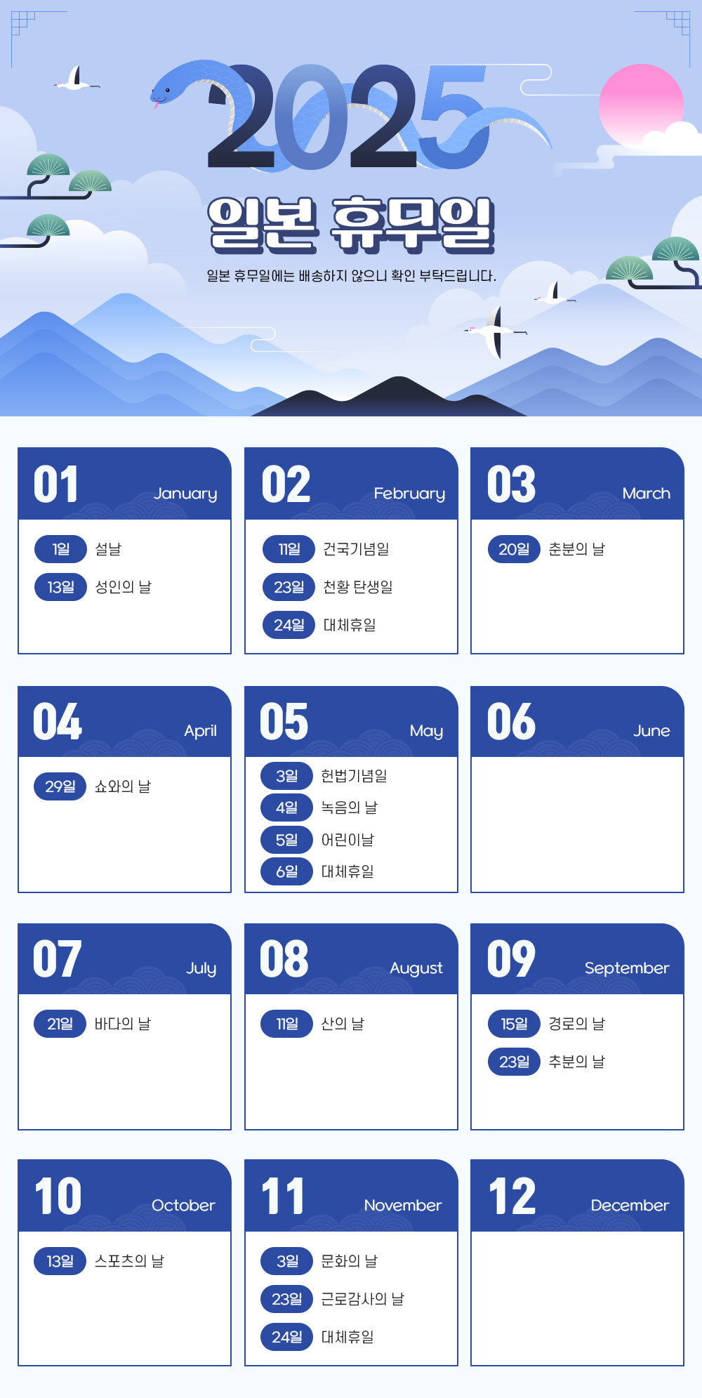 2025년 일본 휴무일 안내